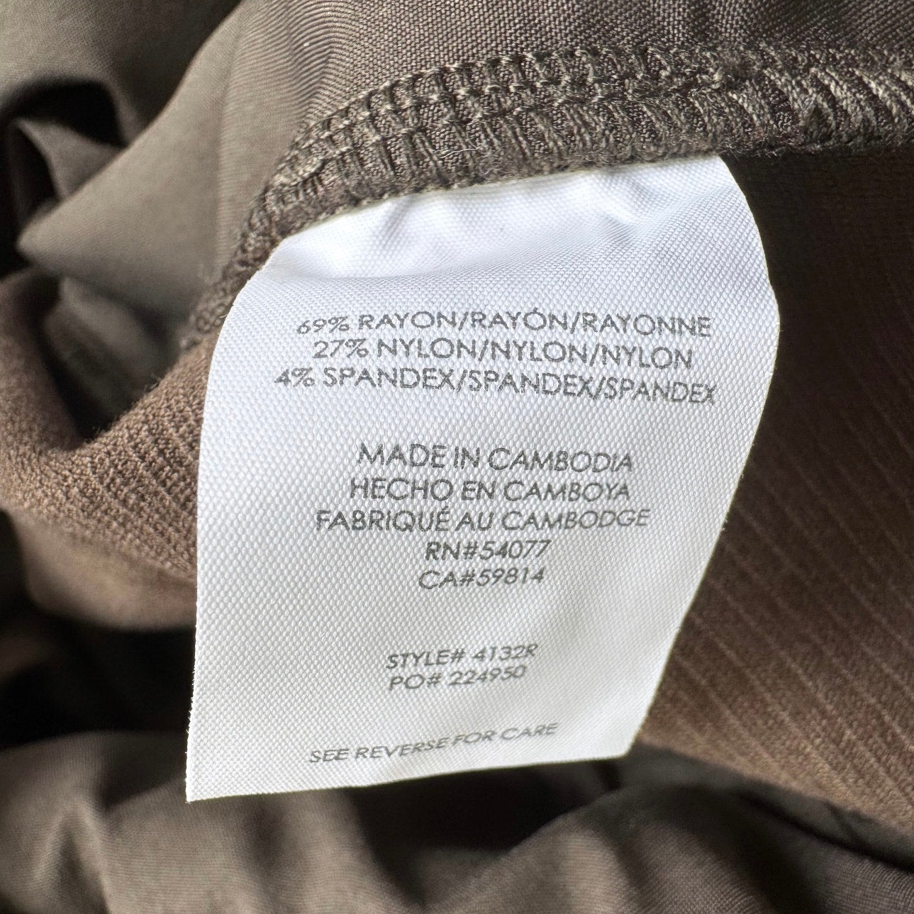 69% rayon, 27% nylon, 4% spandex