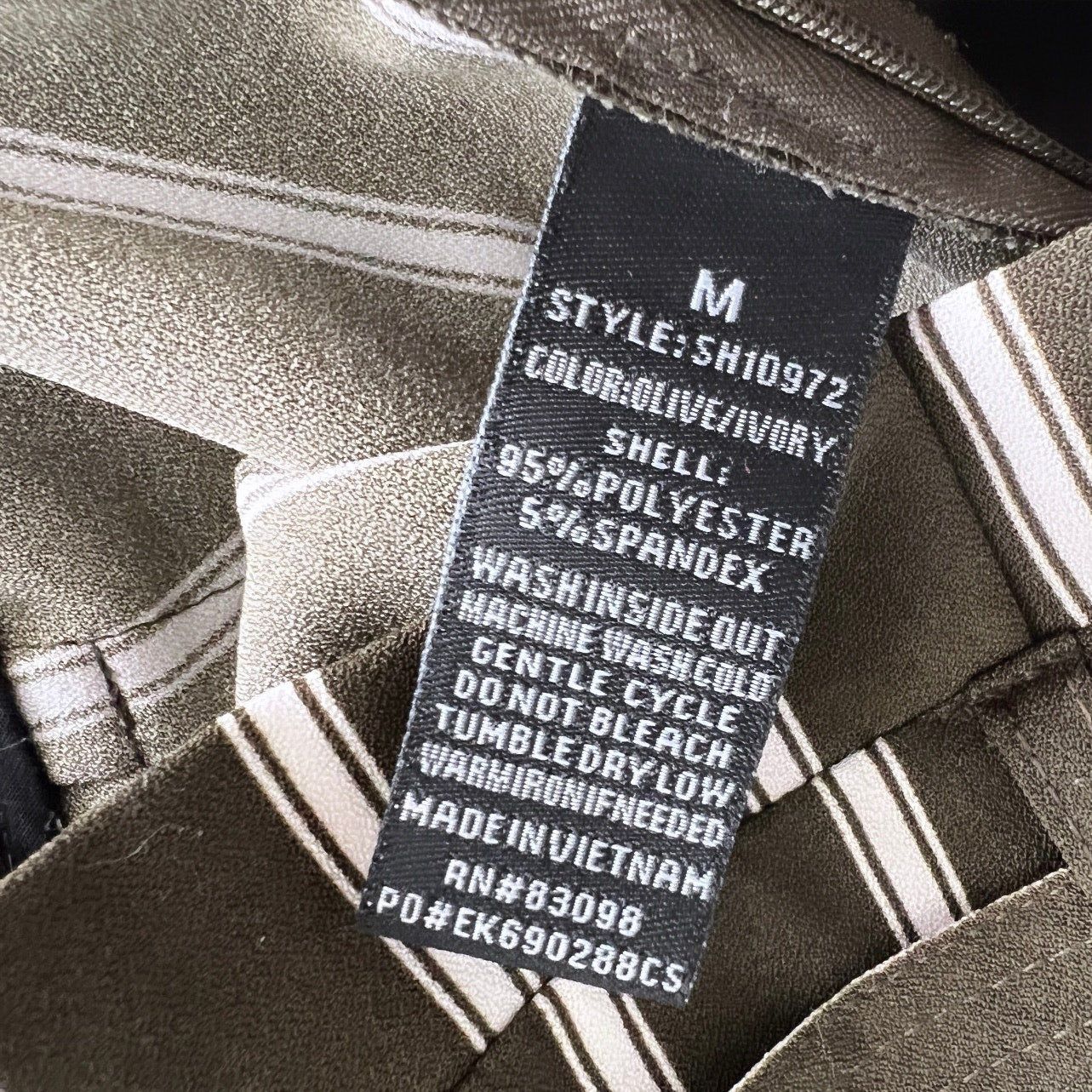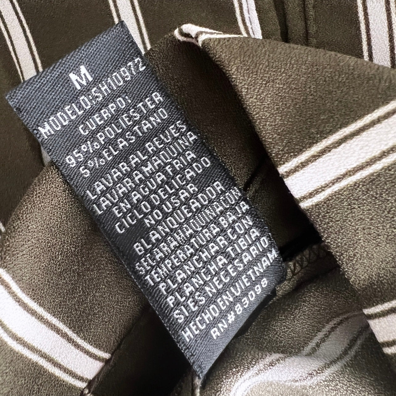 Color is green with white stripes.